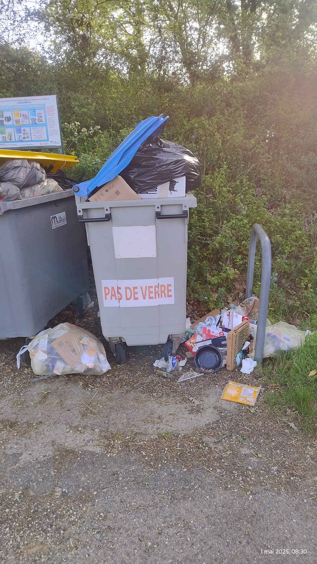 Ne rien poser en proximité ou dans les bacs déjà pleins.